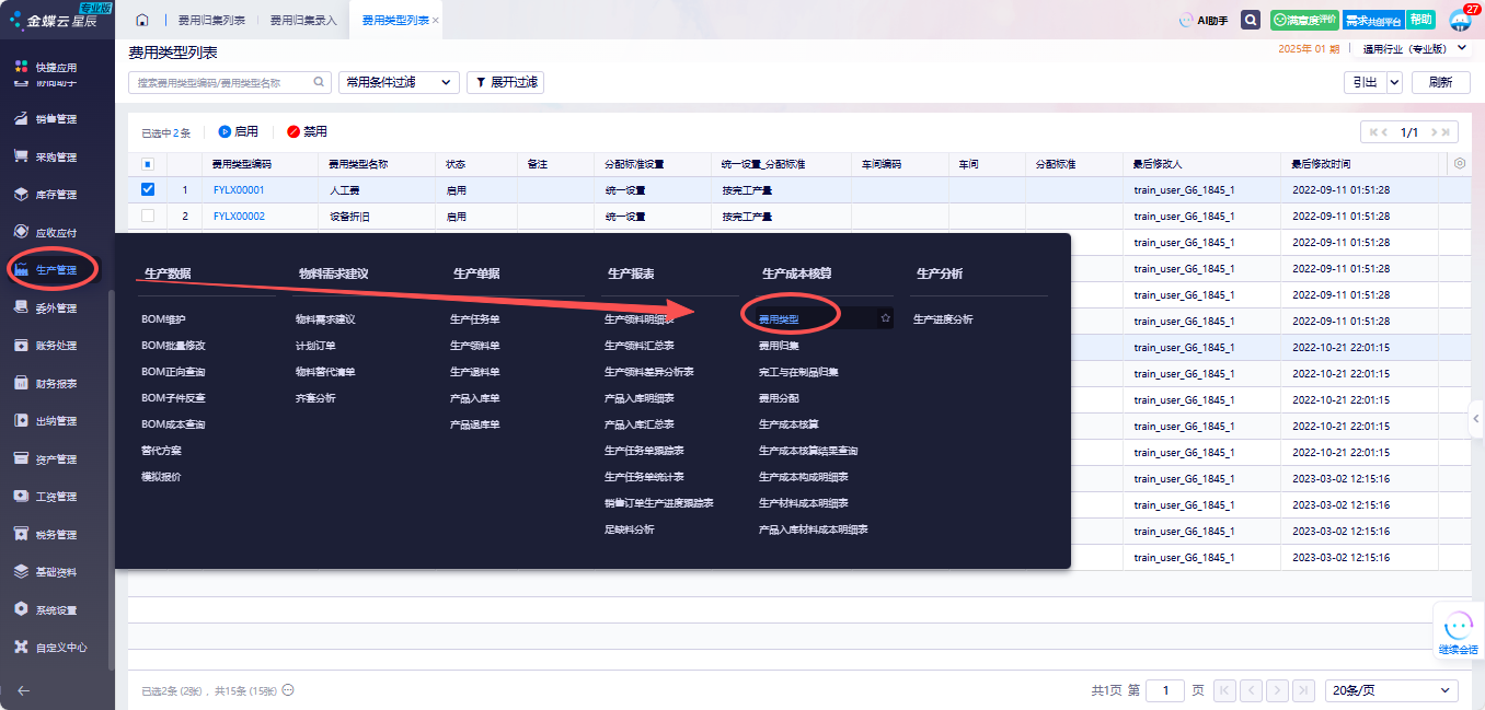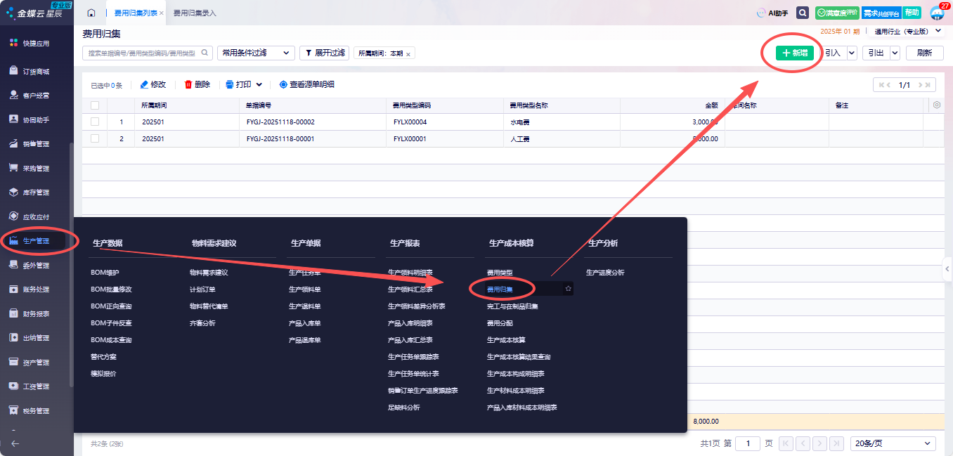 金蝶云星辰软件生产管理中需要分摊费用怎么做?