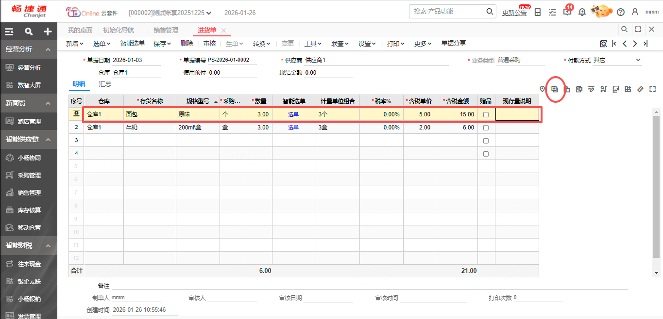 细心的用户都知道,在T+系统中,选择单据的一行可以复制,做其他单据时可以粘贴快速录单。