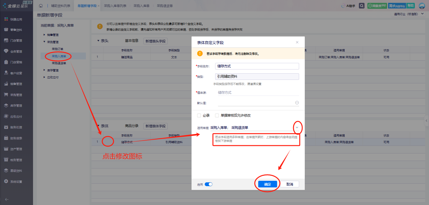 小赵惊讶道:“你不知道吗?咱们的金蝶云星辰里,是可以添加自定义单据字段的,可以根据咱们的实际情况设置,很方便。让我来给你露一手,看好了!”