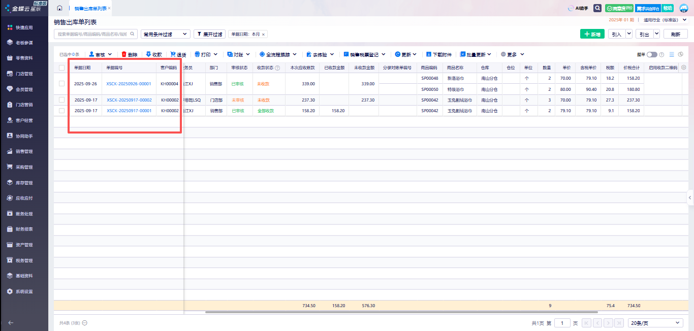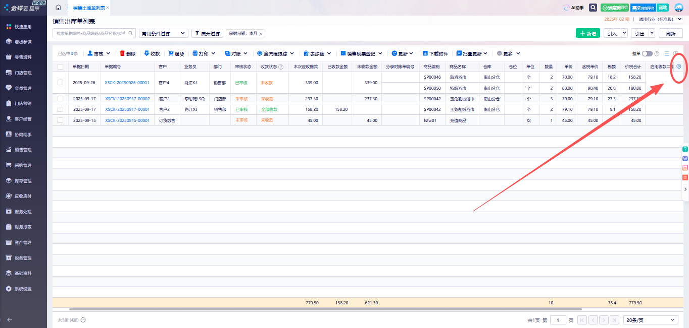 在金蝶云星辰中,我们可以通过列设置中的【显示列】来实现表格字段的显示或隐藏,基本所有表格都可设置。给大家展示一下: