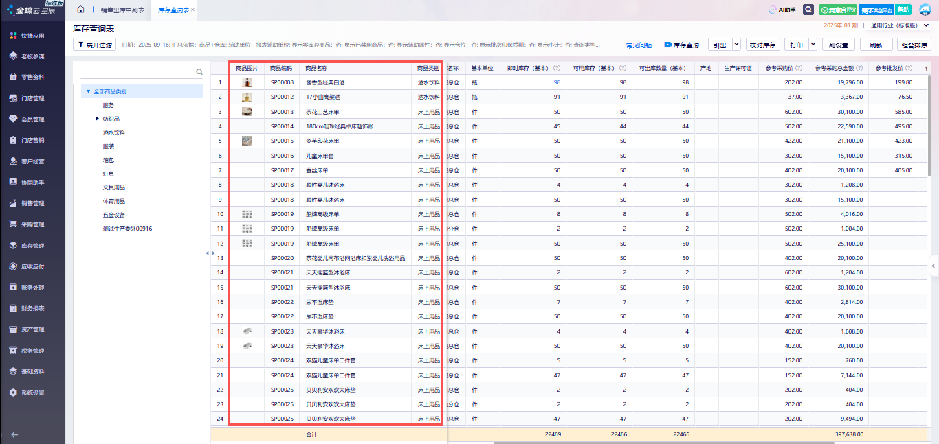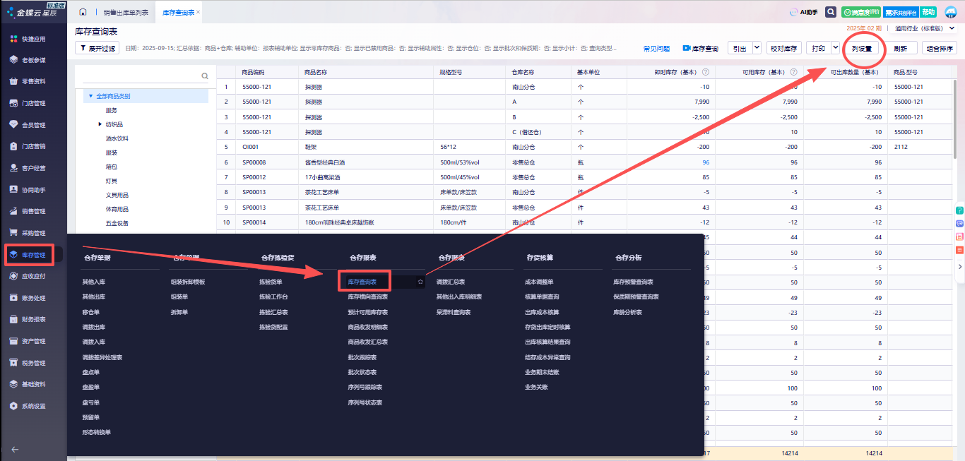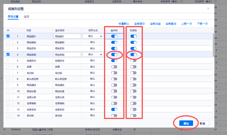 金蝶软件列设置功能——列显示、隐藏、冻结