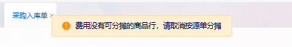 可就在采购开单->【费用分摊】里,系统弹出一行提示:“费用没有可分摊的商品行”。
