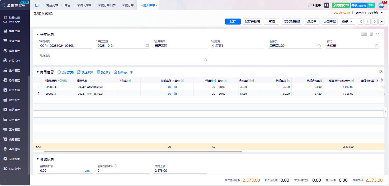 公司刚上线金蝶云星辰,采购部新人小周才跟着教程学了一周,已经能熟练地把“采购订单”下推成“采购开单”。周五早晨,她信心满满地准备挑战“进阶动作”——把300元运费分摊到商品行。