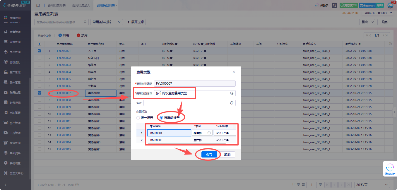 金蝶云星辰软件生产管理中需要分摊费用怎么做?