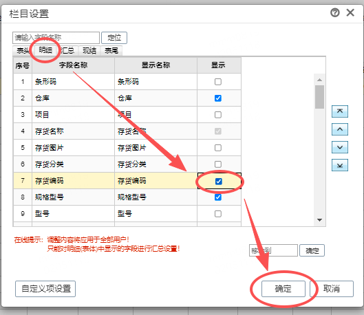 解决的方法其实很简单,只需要把商品编码这一列显示出来即可
